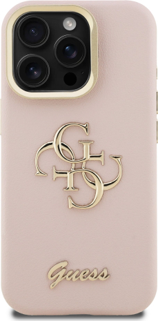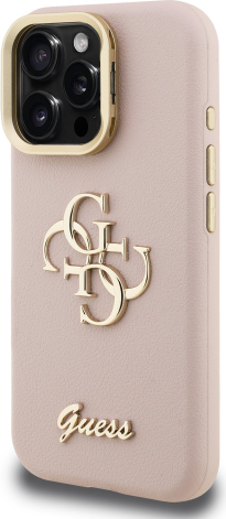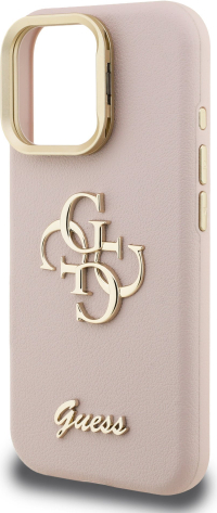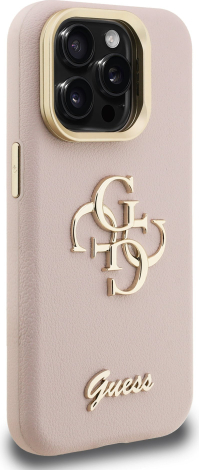 Guess PU Grained 4G Logo Stand Camera Frame Case Aizsargapvalks priekš iPhone 15 Pro / rozā
