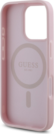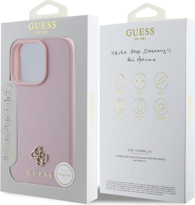 Guess PU Grained 4G Small Metal Logo MagSafe Case Aizsargapvalks priekš iPhone 16 Pro Max / rozā