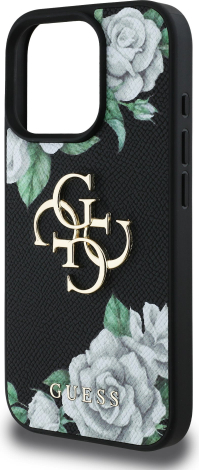 Guess PU Grained Roses 4G Metal Logo Case Aizsargapvalks priekš Apple iPhone 16 Pro