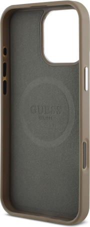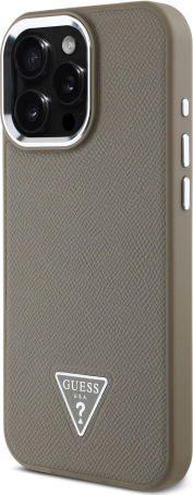 Guess PU Grained Triangle Logo MagSafe Case Aizsargapvalks priekš iPhone 16 Pro Max / brūns