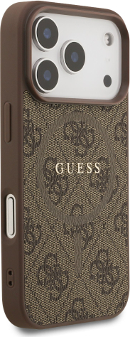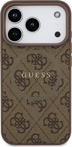 Guess PU Leather 4G Colored Ring MagSafe Case Aizsargapvalks priekš iPhone 17 Pro / brūns