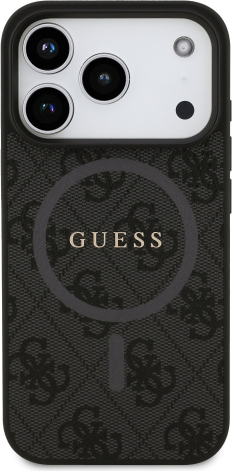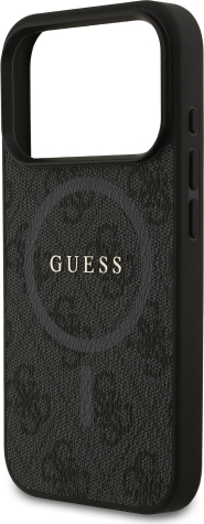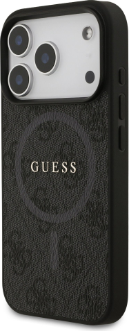 Guess PU Leather 4G Colored Ring MagSafe Case Aizsargapvalks priekš iPhone 17 Pro / melns