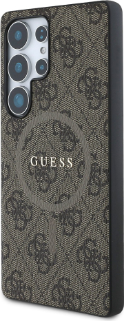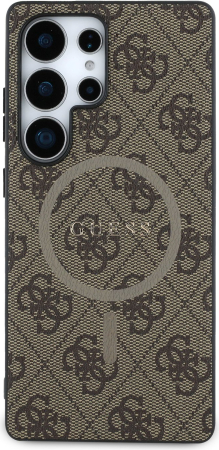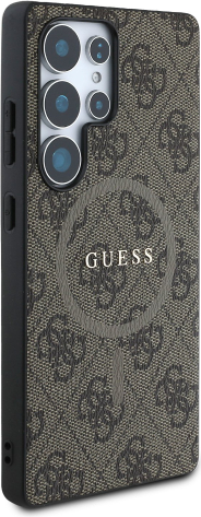 Guess PU Leather 4G Colored Ring MagSafe Case Aizsargapvalks priekš Samsung Galaxy S25 Ultra / brūns