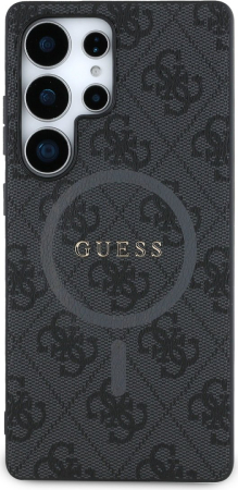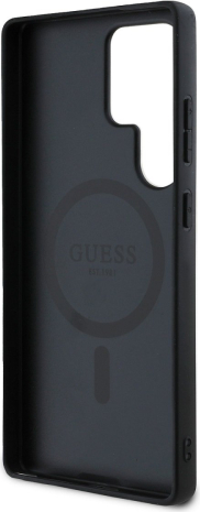 Guess PU Leather 4G Colored Ring MagSafe Case Aizsargapvalks priekš Samsung Galaxy S25 Ultra / melns