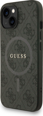 Guess PU Leather 4G Colored Ring Strap MagSafe Case Aizsargapvalks priekš iPhone 14 / melns