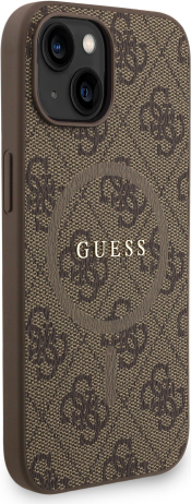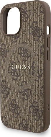 Guess PU Leather 4G Colored Ring Strap MagSafe Case Aizsargapvalks priekš iPhone 15 / brūns