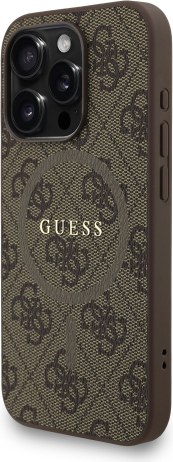 Guess PU Leather 4G Colored Ring Strap MagSafe Case Aizsargapvalks priekš iPhone 15 Pro Max / brūns