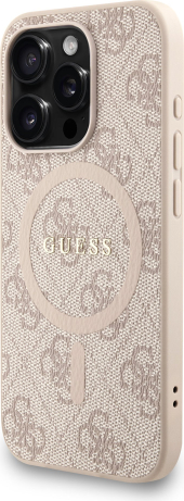 Guess PU Leather 4G Colored Ring Strap MagSafe Case Aizsargapvalks priekš iPhone 15 Pro / rozā