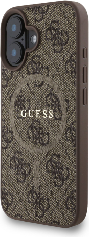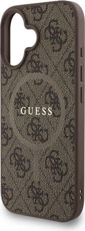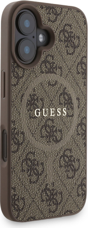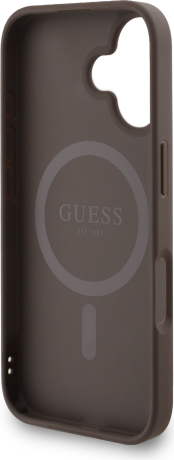 Guess PU Leather 4G Colored Ring Strap MagSafe Case Aizsargapvalks priekš iPhone 16 / brūns
