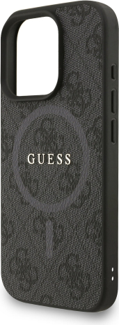 Guess PU Leather 4G Colored Ring Strap MagSafe Case Aizsargapvalks priekš iPhone 16 Pro Max / melns