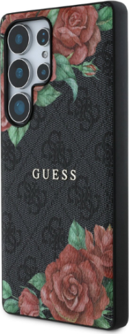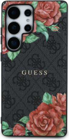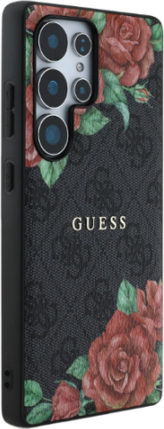 Guess PU Leather 4G Flowers Print Metal Classic Logo MagSafe Case Aizsargapvalks priekš Samsung Galaxy S25 Ultra