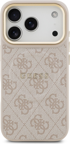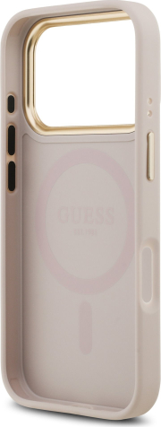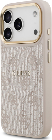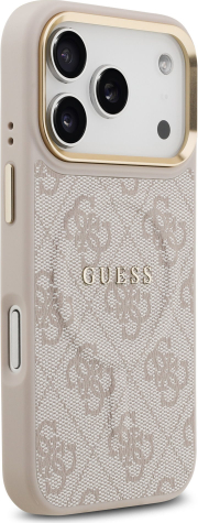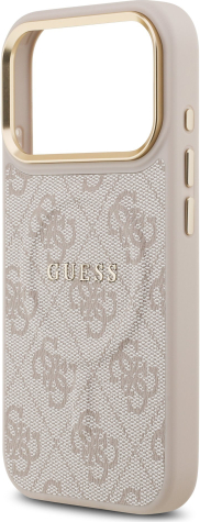 Guess PU Leather 4G Gold Frame MagSafe Case Aizsargapvalks priekš iPhone 17 Pro / rozā