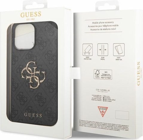 Guess PU Leather 4G Metal Logo Case Aizsargapvalks Priekš Apple iPhone 15 Pro Max