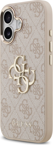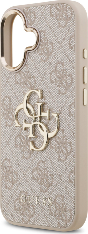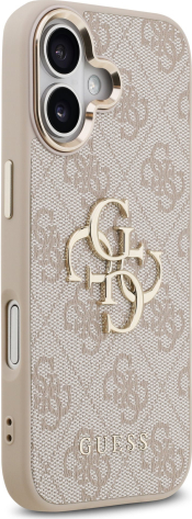 Guess PU Leather 4G Metal Logo Gold Frame Case Aizsargapvalks priekš iPhone 17 / rozā