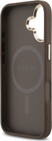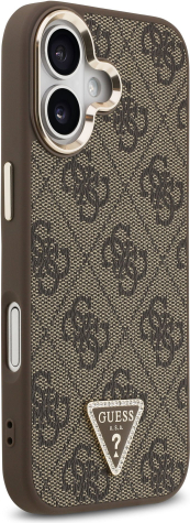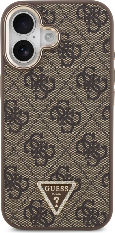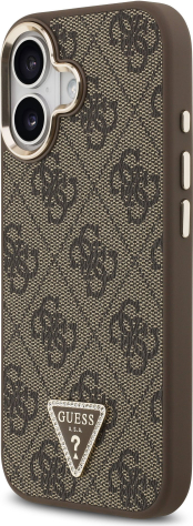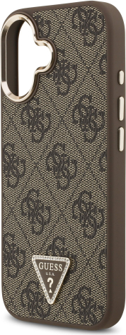 Guess PU Leather 4G Strass Triangle Logo Gold Frame MagSafe Case Aizsargapvalks priekš iPhone 17 / brūns