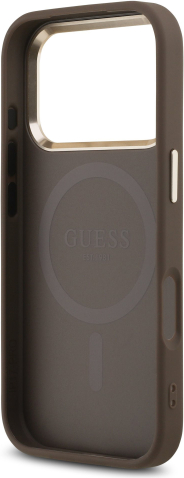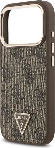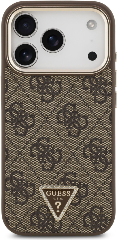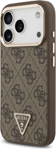 Guess PU Leather 4G Strass Triangle Logo Gold Frame MagSafe Case Aizsargapvalks priekš iPhone 17 Pro / brūns