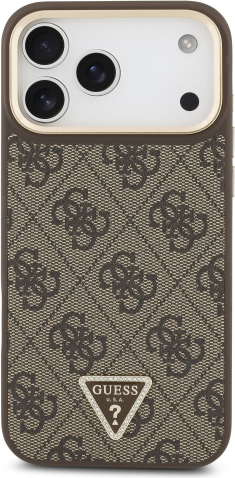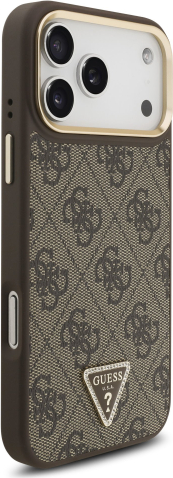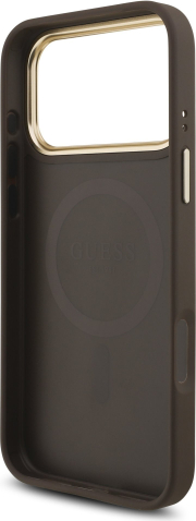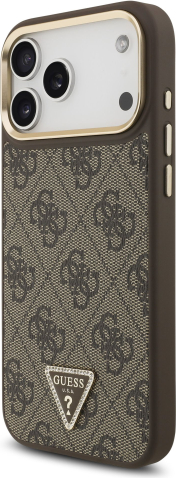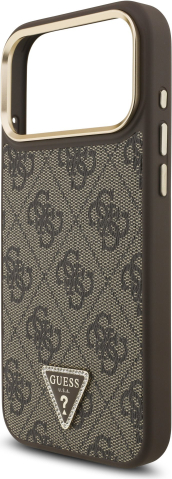 Guess PU Leather 4G Strass Triangle Logo Gold Frame MagSafe Case Aizsargapvalks priekš iPhone 17 Pro Max / brūns