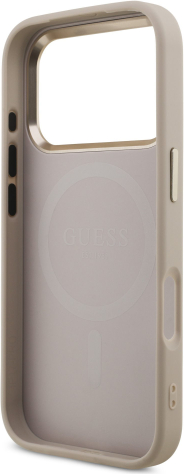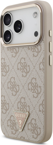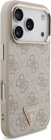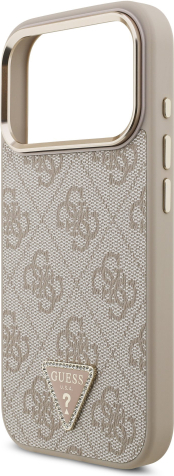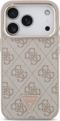 Guess PU Leather 4G Strass Triangle Logo Gold Frame MagSafe Case Aizsargapvalks priekš iPhone 17 Pro / rozā