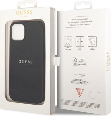 Guess PU Leather Saffiano Case Aizsargapvalks priekš iPhone 14 Plus / melns