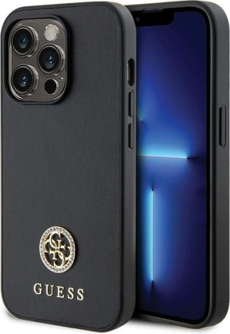 Guess Strass Metal Logo Back Case Aizsargapvalks Priekš Apple iPhone 15 Pro