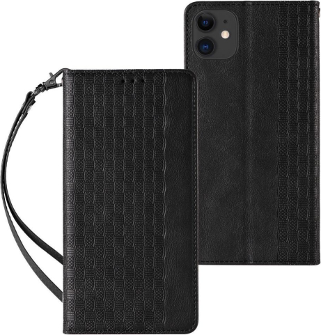 Hurtel - Magnet Strap Case for iPhone 13 mini cover wallet + mini lanyard pendant black