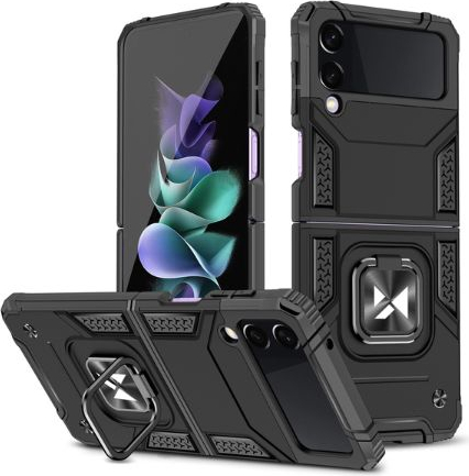 iLike Samsung Galaxy Z Flip 3 Ring Armor tough hybrid case cover + magnetic holder Black
