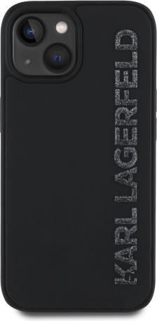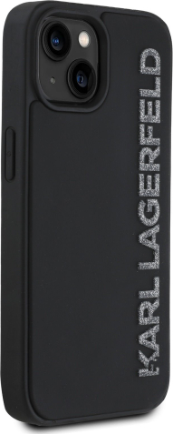 Karl Lagerfeld 3D Rubber Glitter Logo Case Aizsargapvalks priekš iPhone 13 / melns