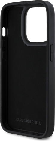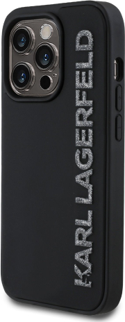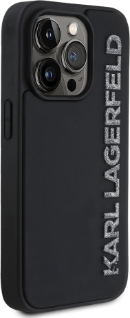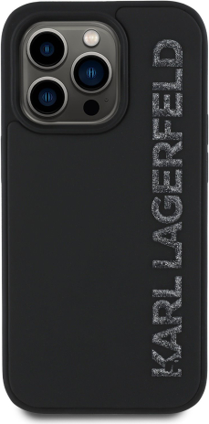 Karl Lagerfeld 3D Rubber Glitter Logo Case Aizsargapvalks priekš iPhone 14 Pro / melns