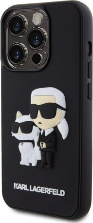Karl Lagerfeld 3D Rubber Karl and Choupette Case Aizsargapvalks priekš iPhone 13 Pro / melns