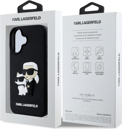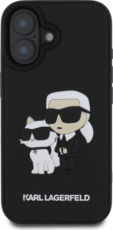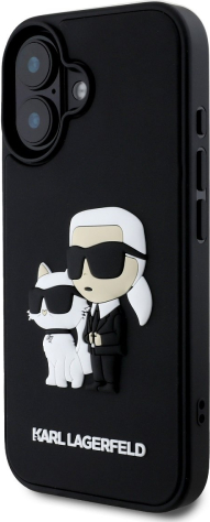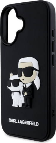 Karl Lagerfeld 3D Rubber Karl and Choupette Case Aizsargapvalks priekš iPhone 16 / melns