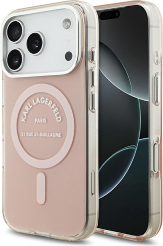 Karl Lagerfeld Apple iPhone 17 Pro Silicone case with MagSafe IML Karl RSG Logo Pink
