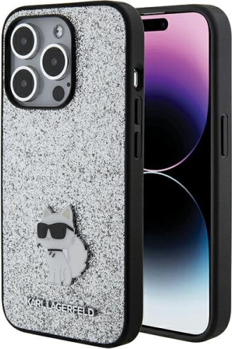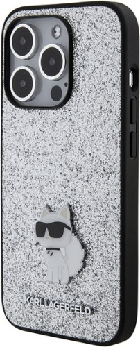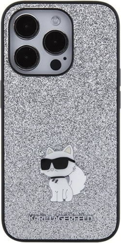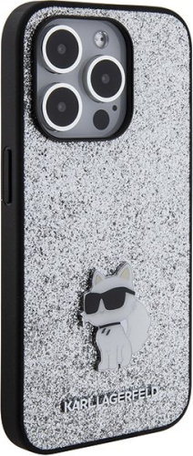 Karl Lagerfeld Fixed Glitter Choupette Logo Metal Pin Aizsargapvalks Priekš Apple iPhone 15 Pro