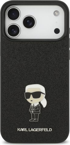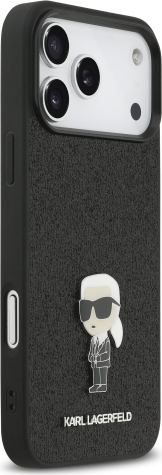 Karl Lagerfeld Fixed Glitter Metal Ikonik Case Aizsargapvalks priekš Apple iPhone 17 Pro Max