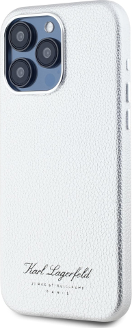 Karl Lagerfeld Grained PU Hotel RSG Aizsargapvalks priekš iPhone 15 Pro / pelēks