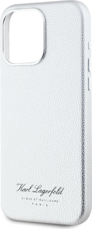 Karl Lagerfeld Grained PU Hotel RSG Case Aizsargapvalks priekš iPhone 15 Pro Max / pelēks