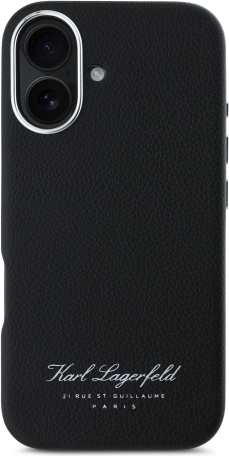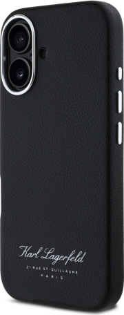Karl Lagerfeld Grained PU Hotel RSG Case Aizsargapvalks priekš iPhone 16 / melns