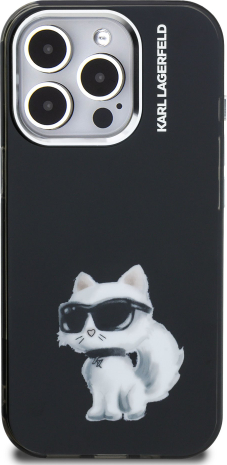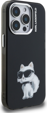 Karl Lagerfeld IML Aquarelle Choupette Case Aizsargapvalks priekš iPhone 15 Pro Max / melns