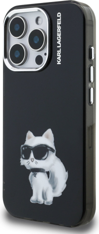 Karl Lagerfeld IML Aquarelle Choupette Case Aizsargapvalks priekš iPhone 15 Pro / melns
