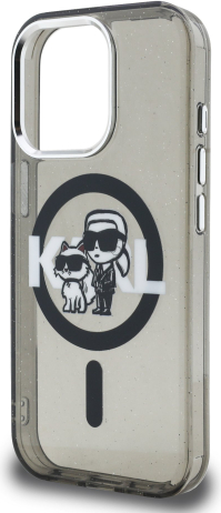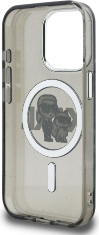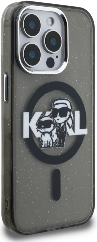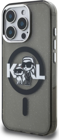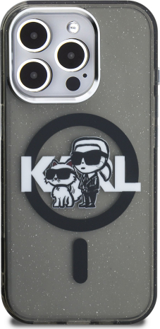 Karl Lagerfeld IML Glitter Karl and Choupette Sketch MagSafe Case Aizsargapvalks priekš iPhone 15 Pro / melns