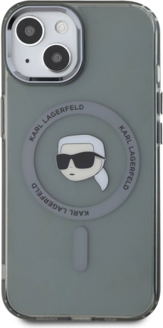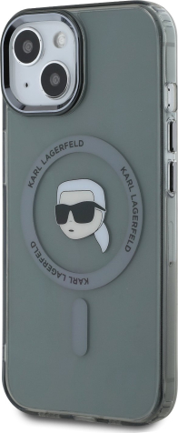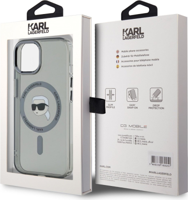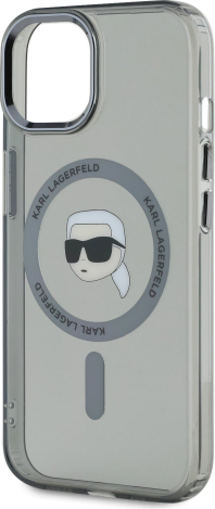 Karl Lagerfeld IML Karl Head Metal Frame MagSafe Aizsargapvalks priekš iPhone 15 / melns