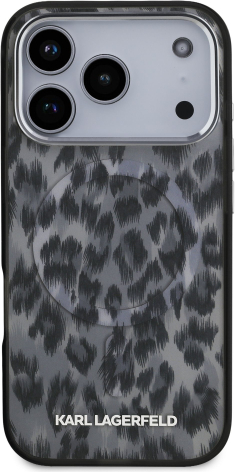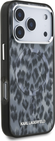 Karl Lagerfeld IML Leopard MagSafe Case Aizsargapvalks priekš iPhone 17 Pro / pelēks