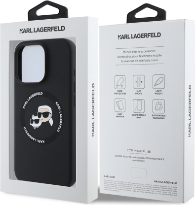Karl Lagerfeld Liquid Silicone K&CH Heads MagSafe Case Aizsargapvalks priekš iPhone 16 Pro Max / melns