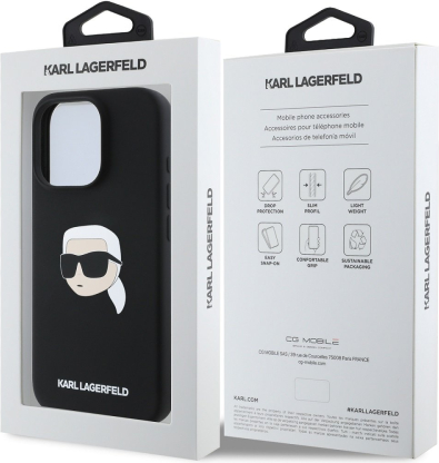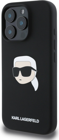 Karl Lagerfeld Liquid Silicone Karl Head MagSafe Case Aizsargapvalks priekš iPhone 16 Pro / melns