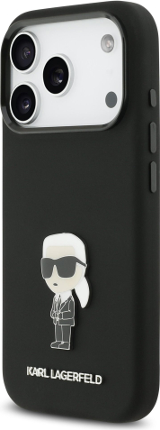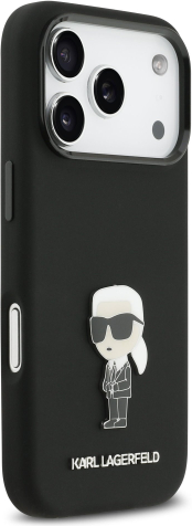 Karl Lagerfeld Liquid Silicone Metal Ikonik Case Aizsargapvalks priekš iPhone 17 Pro / melns