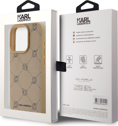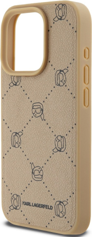 Karl Lagerfeld PU Karl Heads Pattern MagSafe Case Aizsargapvalks priekš iPhone 15 Pro Max / bēšs