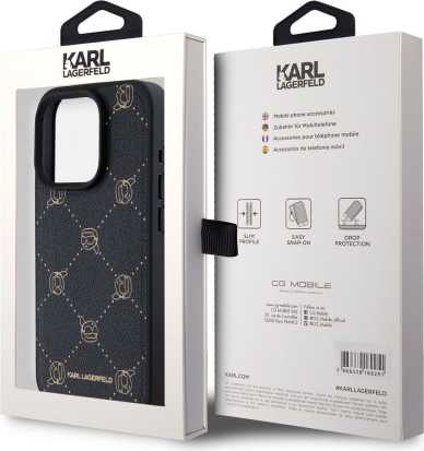 Karl Lagerfeld PU Karl Heads Pattern MagSafe Case Aizsargapvalks priekš iPhone 15 Pro Max / melns