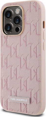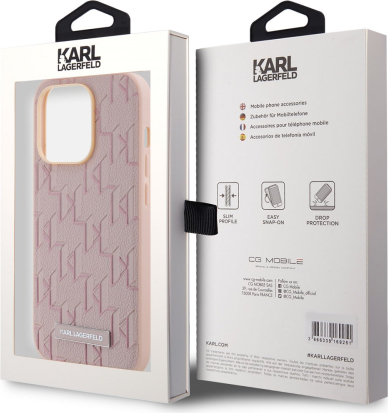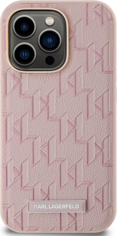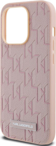 Karl Lagerfeld PU Leather Monogram Metal Logo MagSafe Case Aizsargapvalks priekš iPhone 14 Pro Max / rozā