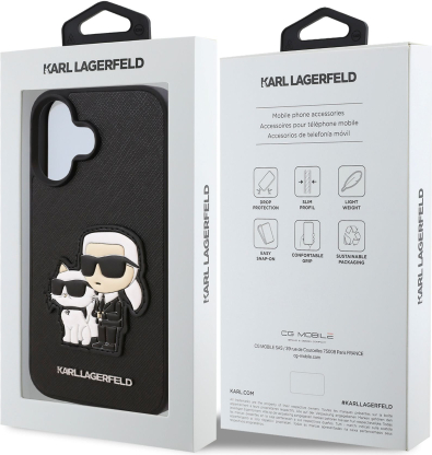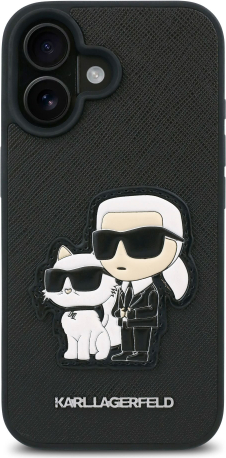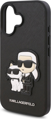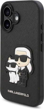Karl Lagerfeld PU Saffiano Karl and Choupette Aizsargapvalks priekš iPhone 16 Plus / melns