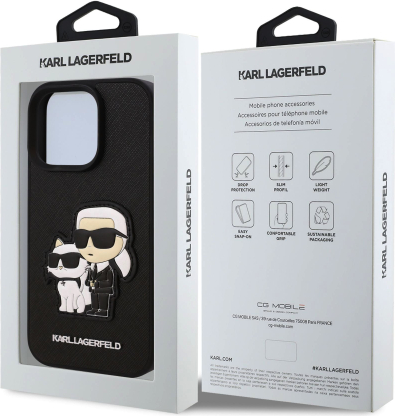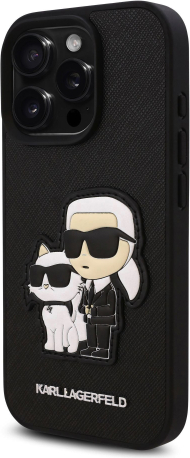 Karl Lagerfeld PU Saffiano Karl and Choupette Aizsargapvalks priekš iPhone 16 Pro / melns