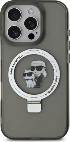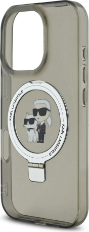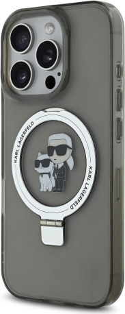 Karl Lagerfeld Ringstand Karl and Choupette MagSafe Case Aizsargapvalks priekš iPhone 16 Pro / melns